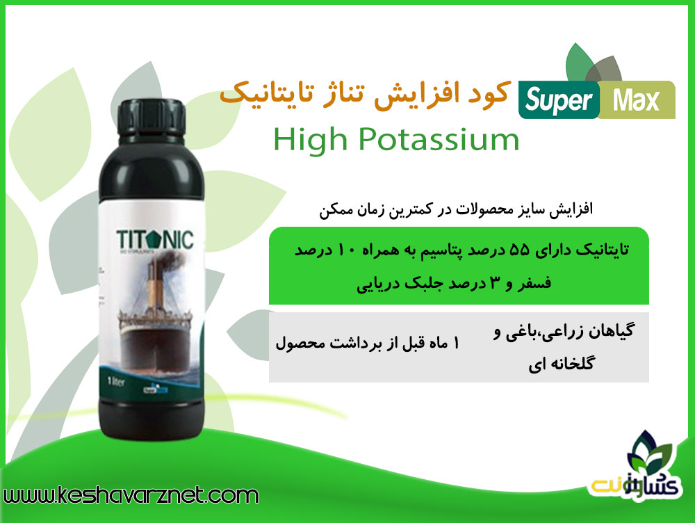 کود درشت کننده میوه تایتانیک دارای 3 درصد جلبک دریایی بوده که همزمان با افزایش رشد میوه باعث افزایش رشد رویشی نیز خواهد شد. کود درشت کننده میوه تایتانیک یک کود برگ پاش حاوی عناصر غذایی اصلی با ذرصد پتاسیم بالا و جلبک دریایی باعث تقویت گیاه، رفع کمبود و افزایش گلدهی و میوه دهی و بهبود کیفیت محصول می شود.