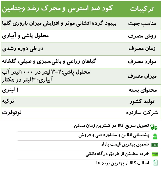 – کود وجتامین ضد استرس و محرک رشد باعث افزایش کیفیت و عملکرد محصول می شود