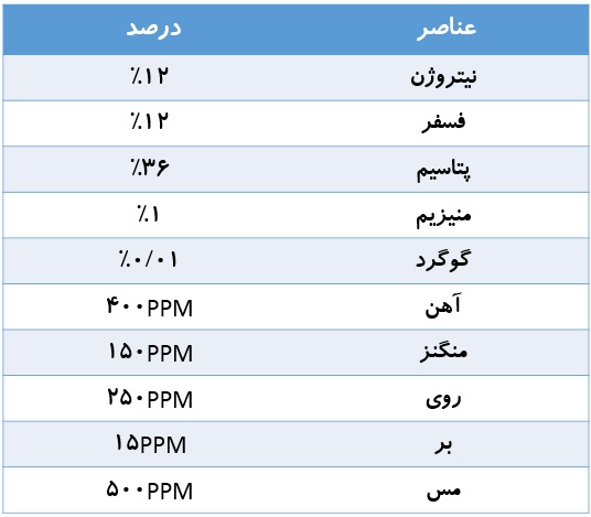 ۱- حاوی عناصر نیتروژن، فسفر و پتاسیم به نسبت متفاوت