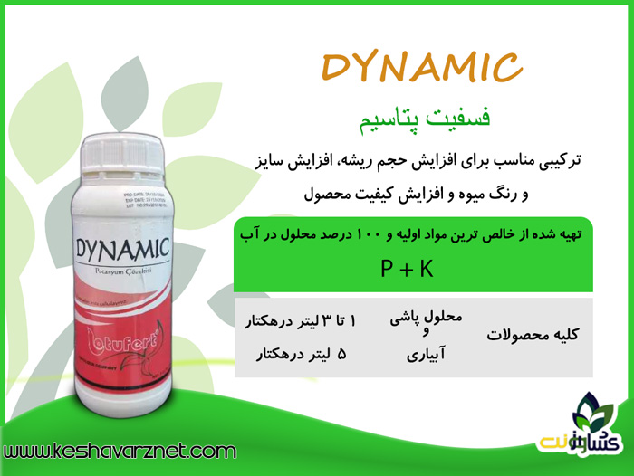 3-کود فسفیت پتاسیم داینامیک برای تمام مراحل رشد گیاه به خصوص در زمان رشد زایشی قابل استفاده است.